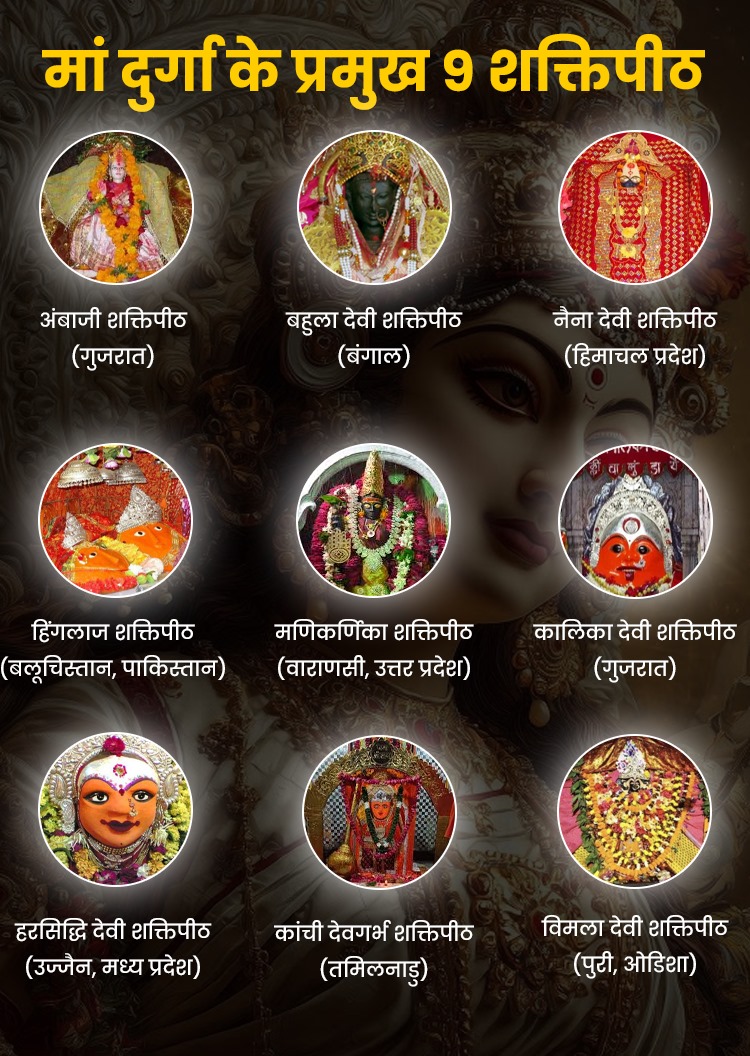 इसी दौरान मां दुर्गा के विभिन्न रूपों की उपासना के साथ-साथ शक्तिपीठों का महत्व भी बढ़ जाता है। शक्तिपीठों को देवी के शरीर और आभूषणों के पवित्र अवशेषों से जुड़े स्थल माना जाता है, जहां मां की विशेष शक्ति व पवित्रता विद्यमान होती है। आइए जानते हैं कुछ शक्तिपीठों के बारे में।