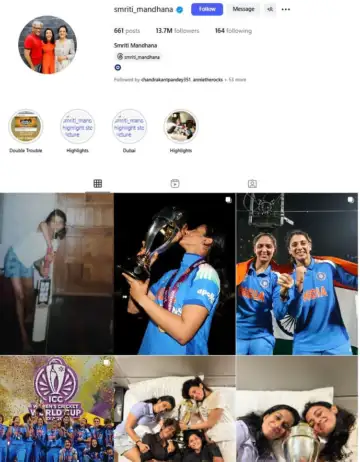 लेकिन अब शादी स्थगित होने के बाद स्मृति ने अपने इंस्टा से ये सारी तस्वीरें और वो वीडियो डिलीट कर दी है. जिसमें वो सगाई की रिंग फ्लॉन्ट करती नजर आई थी. ये देखकर सोशल मीडिया यूजर्स भी हैरान हो गए हैं. साथ ही अब ये बातें होने लगी है कि कपल ने अपनी शादी स्थगित नहीं की है बल्कि तोड़ दी है. हालांकि इसपर स्मृति ने कोई ऑफिशियल बयान नहीं दिया है. बता दें कि पलाश मुच्छल के इंस्टा पर स्मृति को स्टेडियम में प्रपोज करने वाली वीडियो अभी भी है. जिसपर कमेंट करते हुए एक यूजर ने लिखा, 'ये भी डिलीट हो जाएगी.'