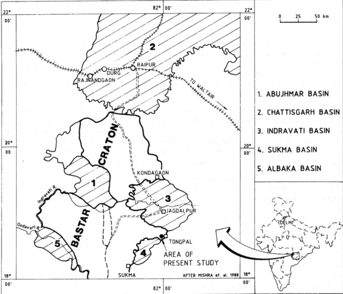 बस्तर अंचल का भूवैज्ञानिक एवं खनिज बेसिन मानचित्र