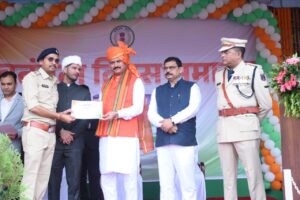 श्री जायसवाल ने जिलें के स्वतंत्रता संग्राम सेनानी परिजन लक्ष्मी ठाकुर, सावित्री सोनी, वीर शहीद उपनिरीक्षक विवेक शुक्ला, युगल किशोर वर्मा,ट्रेड आर नंदकुमार साहू,आर हुमेश्वर प्रसाद कुर्रे, हीरा लाल गायकवाड़, संतराम साहू,धनंजय वर्मा, संतोष ध्रुव,मिथिलेश कुमार, टेकराम वर्मा के परिजनों का श्रीफल एवं साल से सम्मान कर उनका हाल चाल जाना।इसके अतरिक्त जिले के 4 मीसाबंदियो का भी सम्मान किया गया। जिसमें किरण चौहान,रेखा आडिल, रामन अग्रवाल,दूलेचंद्र वर्मा शामिल है।इसके साथ ही श्री जायसवाल ने मुख्य मंच से करीब 46 अधिकारी-कर्मचारियों को उनके बेहतर सेवा के लिए जिला प्रशासन की ओर से सम्मानित किया। इनमें खाद्य विभाग तत्कालिन खाद्य अधिकारी विमल दुबे, खनिज विभाग खनिज निरीक्षक भूपेन्द्र भक्त,राजस्व विभाग स्टेनोटायपिस्ट श्रीमती लक्ष्मी देशमुख राय, कोटवार संजय कुमार मानिकपुरी, स्वाथ्य विभाग प्रभारी एसएनसीयू नर्सिंग ऑफिसर श्रीमती प्रमिला कांत, समस्त टीम प्राथमिक स्वास्थ्य केन्द्र दामाखेड़ा,कृषि विभाग ग्रामीण कृषि विस्तार अधिकारी अश्वनी कुमार साहू, कृषि विज्ञान केन्द्र भाटापारा वरिष्ठ वैज्ञानिक एवं प्रमुख डॉ. अंगत सिंह राजपूत,आयुष विभाग औषधालय सेवक माखन लाल ध्रुव,विद्युत विभाग अनुभाग अधिकारी संजय बिहारी अग्रवाल, जल प्रबंध संभाग क्र.-2 उप अभियंता कु.पार्वती टण्डन,एन.आई.सी. डिस्ट्रीक्ट रोल ऑउट मैनेजर राजेश्वर प्रधान, महिला एवं बाल विकास विभाग महिला बाल विकास अधिकारी आदित्य शर्मा, परियोजना पलारी पर्यवेक्षक श्रीमती अर्चना बर्मन, आंगनबाड़ी कार्यकर्ता कुमारी पटेल, सहायक ग्रेड-2 चन्द्रेश बरमाल,जिला पंचायत भृत्य डोमेश साहू, पी.आर.पी. श्रीमती प्रतिमा टोण्ड्रे, रोजगार सहायक हरिनभटठा धर्मेन्द यादव, शिक्षा विभाग प्राचार्य संतोष वर्मा, व्याख्याता (एल.बी.) रामावतार वर्मा, सहायक शिक्षक श्रीमती निर्मला देवांगन, श्रीमती आराधना वर्मा, छात्रा कु. कोपल अम्बष्ट, कु.प्रीती, कु. डॉली पटेल, कु.अदिति साहू, कु. निधि साहू, पुलिस विभाग निरीक्षक लखेश केंवट, सउनि श्रवण कुमार नेताम, प्रधान आरक्षक मोहम्मद अरशद खान, अशोक खुंटे, महेन्द्र कुमार पोर्ते, म.आर. स्वाती साहू, आरक्षक भूपेन्द्र कुमार गुप्ता,आशुतोष बंजारे, नाथूराम निषाद, भूपेश कुमार यादव, भोला कुमार टंडन, पुरूषोत्तम कुमार बंजारे, संतोष कुमार ध्रुव, गोपाल प्रसाद पाल, टीकाराम साहू, कृष्ण कुमार सिंदराम, संजय कुमार ध्रुव शामिल है। सभी अधिकारियों एवं कर्मचारियों को जिला प्रशासन की ओर से प्रमाण पत्र एवं स्मृति चिन्ह देकर सम्मानित किया। इसके अतरिक्त जिला पंचायत सभापति नवीन मिश्रा को भी सम्मानित किया गया। इसी तरह आज सांस्कृतिक कार्यक्रमों में शास्वत 