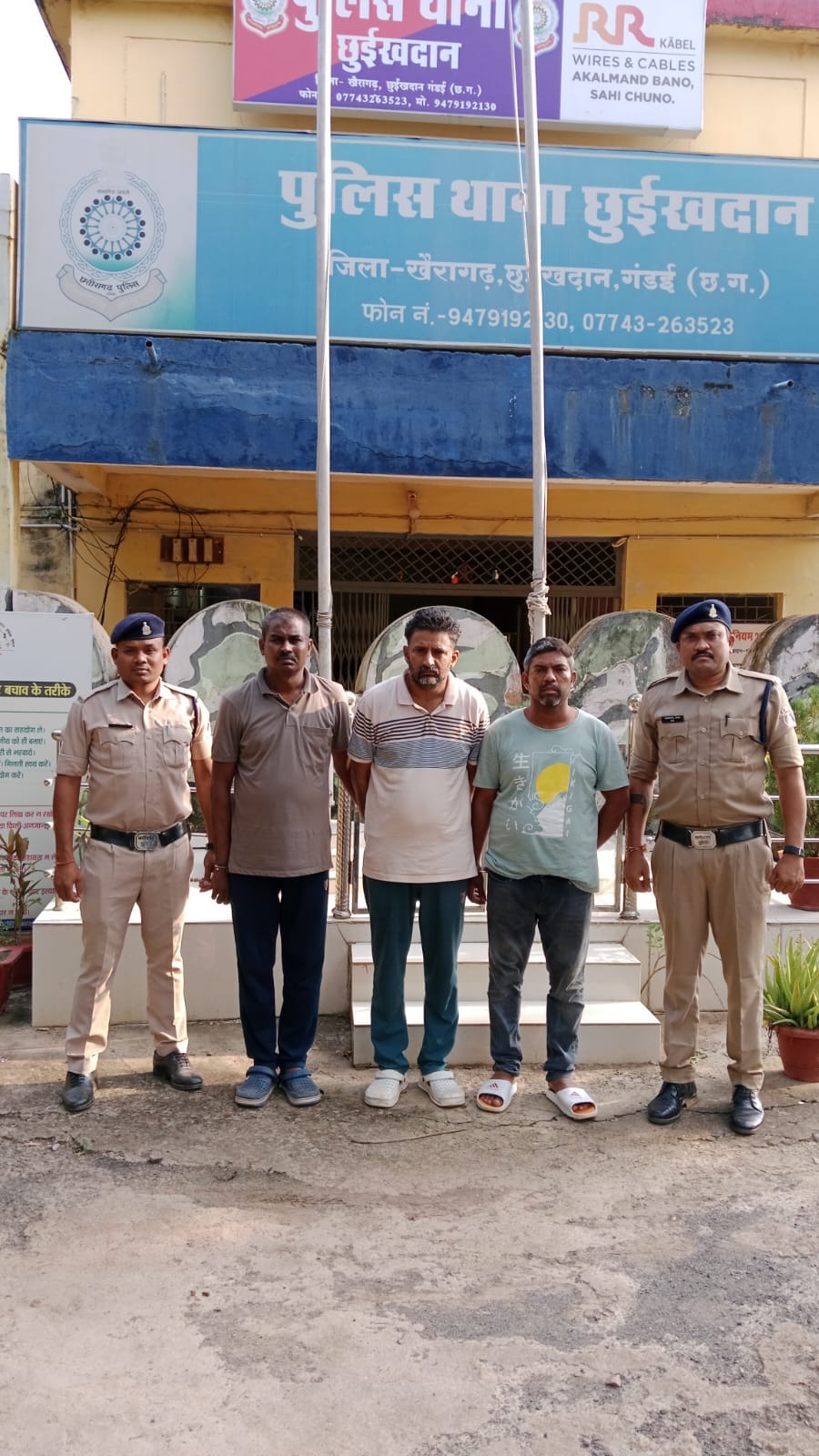प्रकरण में पुलिस अधीक्षक खैरागढ-छुईखदान-गंड़ई (छ0ग0) श्री त्रिलोक बंसल (भा.पु.से.), अतिरिक्त पुलिस अधीक्षक श्रीमती नेहा पाण्डे, पुलिस अनुविभागीय अधिकारी खैरागढ़ श्री लालचंद मोहले के कुशल मार्गदर्शन में थाना प्रभारी छुईखदान निरीक्षक शिवशंकर गेन्दले, थाना प्रभारी गंडई निरीक्षक भीमसेन यादव के नेतृत्व में लगातार विवचेना एवं प्रयास कर आरोपियों की पता तलाश की जाकर आरोपीगण