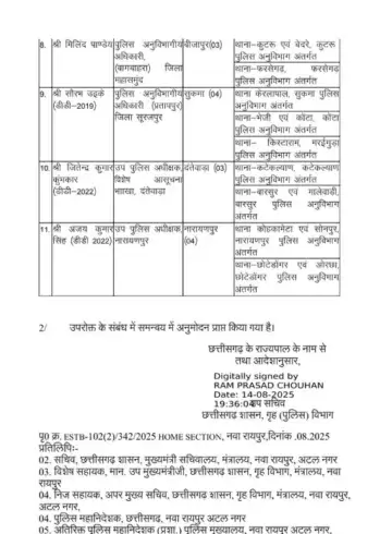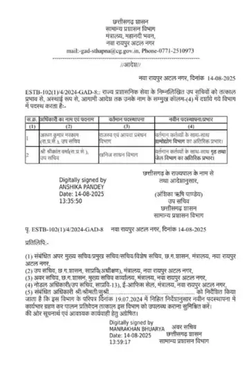 अन्य अधिकारियों के नाम भी इस आदेश में शामिल हैं।