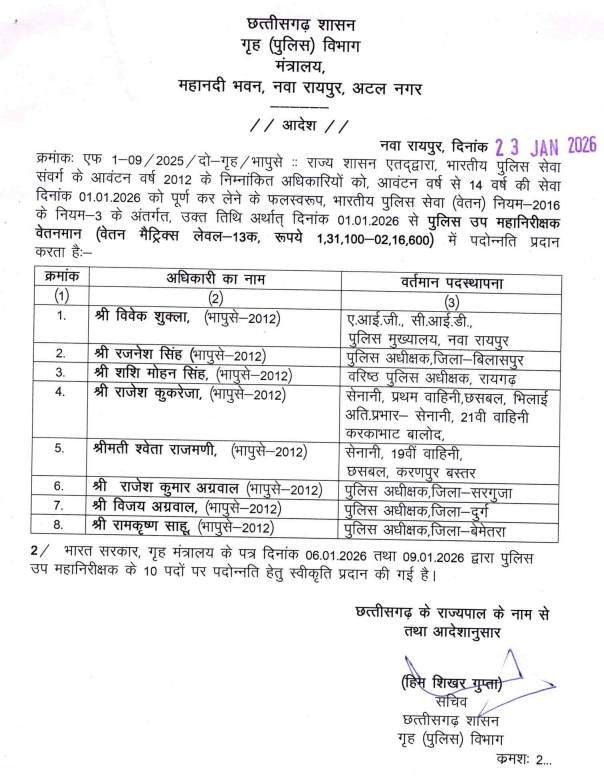 इन पदों पर पदोन्नति के लिए भारत सरकार के गृह मंत्रालय द्वारा 6 जनवरी एवं 9 जनवरी 2026 को स्वीकृति प्रदान की गई थी।