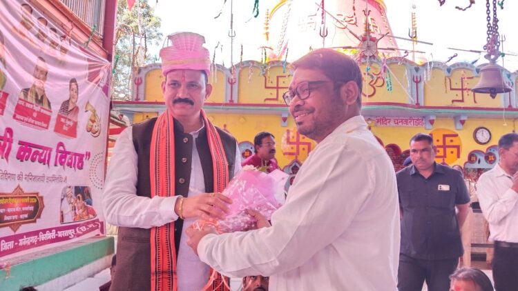 एमसीबी- खड़गवां : मुख्यमंत्री कन्या विवाह योजना के अंतर्गत खड़गवां क्षेत्र के चनवारीडांड स्थित मां महामाया धाम में 189 जोड़ों का सामूहिक विवाह समारोह भव्य रूप से संपन्न हुआ। धार्मिक और उत्सवी वातावरण में आयोजित इस कार्यक्रम में हजारों की संख्या में परिजन, बाराती और स्थानीय नागरिक शामिल हुए। समारोह में मुख्य अतिथि के रूप में स्थानीय विधायक श्याम बिहारी जायसवाल उपस्थित रहे। उनके साथ अनुविभागीय अधिकारी, स्थानीय सरपंच, महिला एवं बाल विकास विभाग के अधिकारी-कर्मचारी तथा जनप्रतिनिधि भी मौजूद रहे।